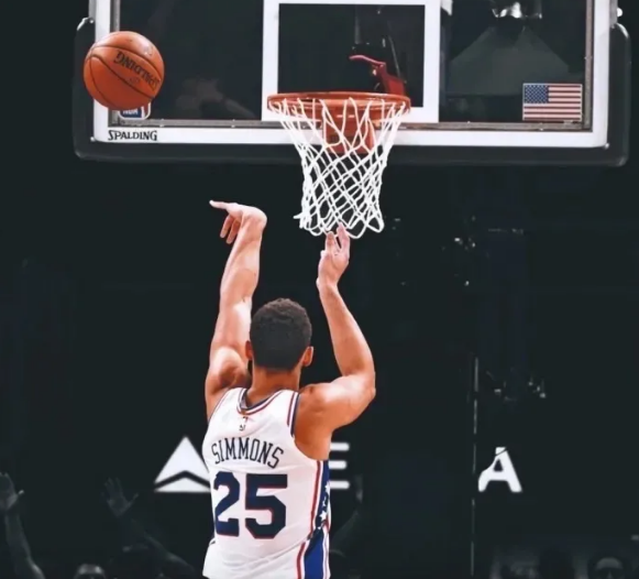 西蒙斯转身篮下,空篮不上选择了传球队友硬上,博得了犯规。
